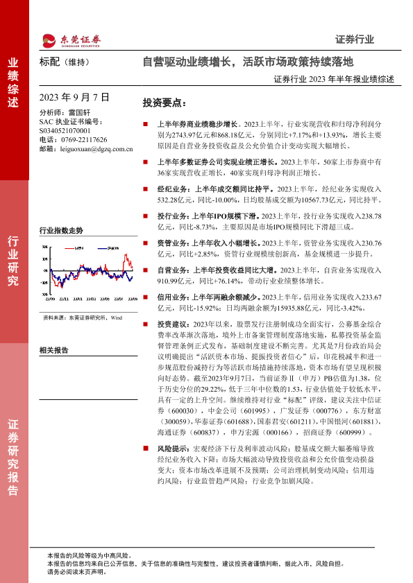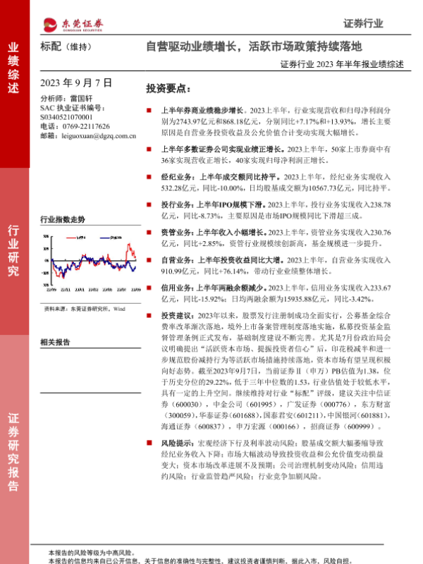 【东莞证券】【20230907】证券行业2023年半年报业绩综述:自营驱动业绩增长,活跃市场政策持续落地-18页