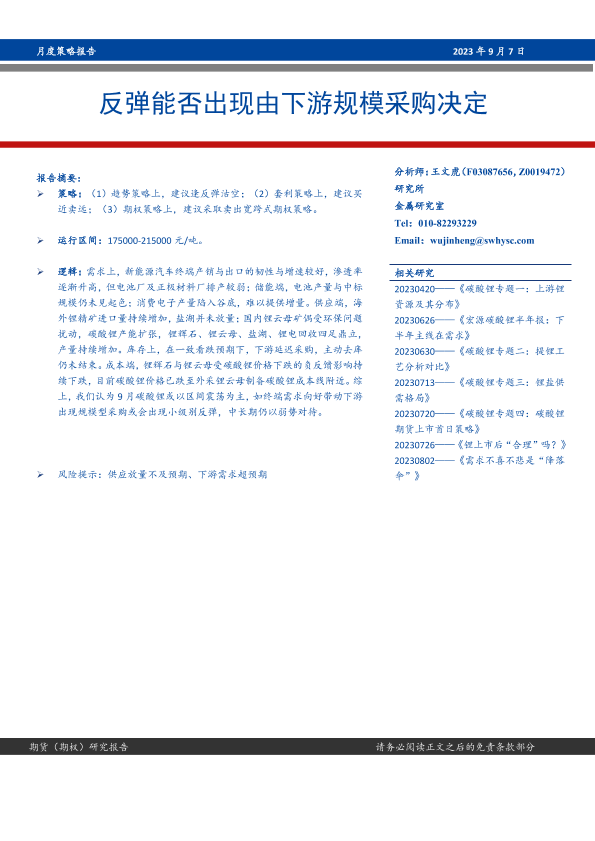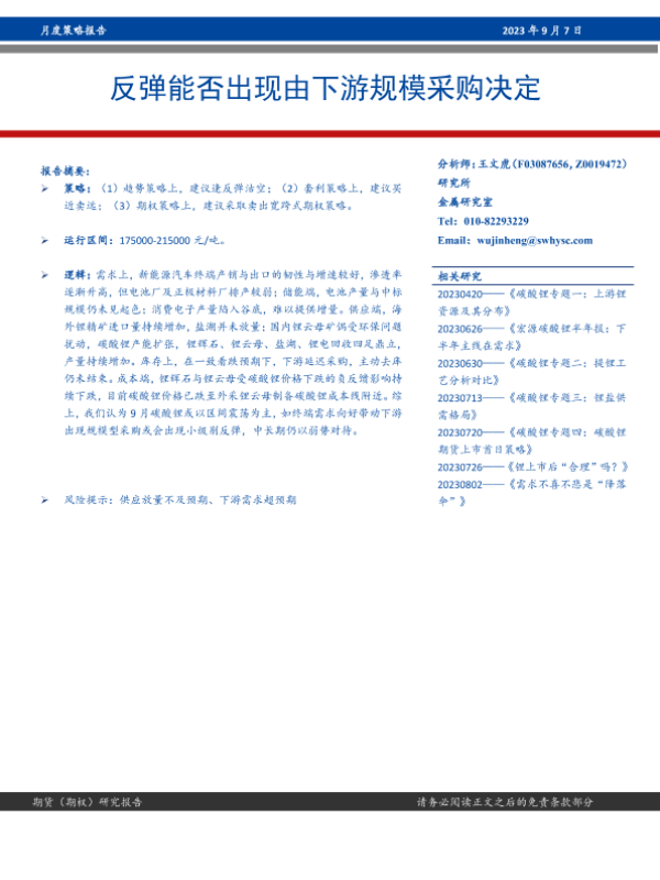【宏源期货】【20230907】月度策略报告:反弹能否出现由下游规模采购决定-16页