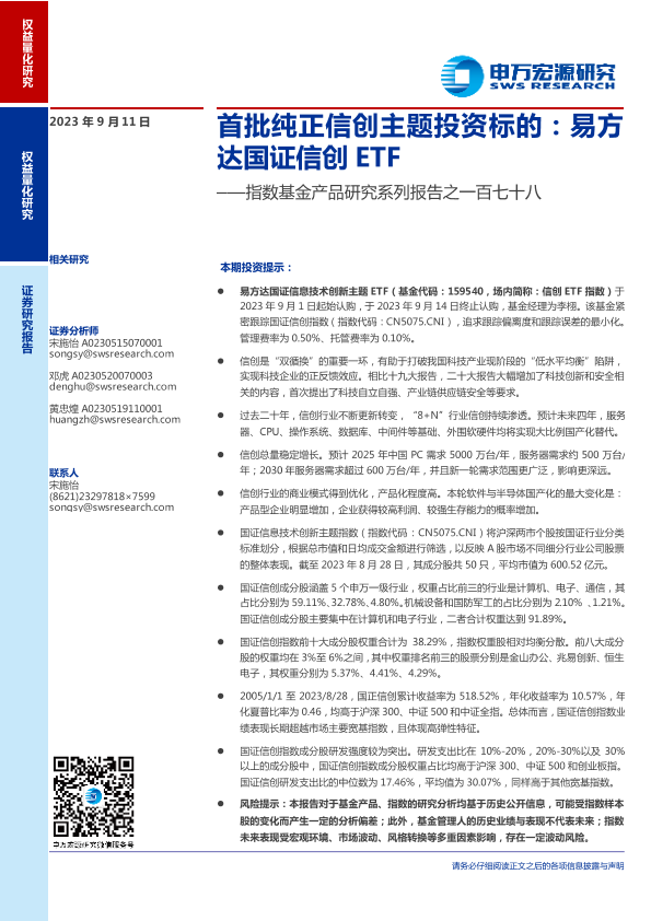 【申万宏源】【20230911】首批纯正信创主题投资标的:易方达国证信创ETF-20页