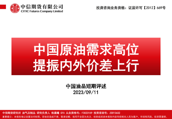 【中信期货】【20230911】中国原油需求高位,提振内外价差上行-119页