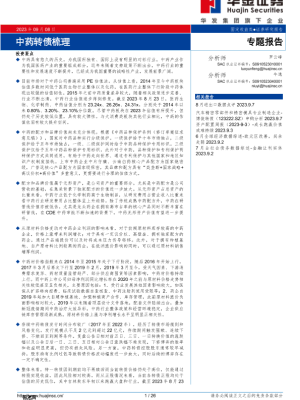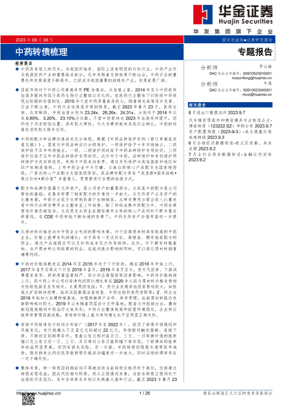 【华金证券】【20230908】中药转债梳理-26页