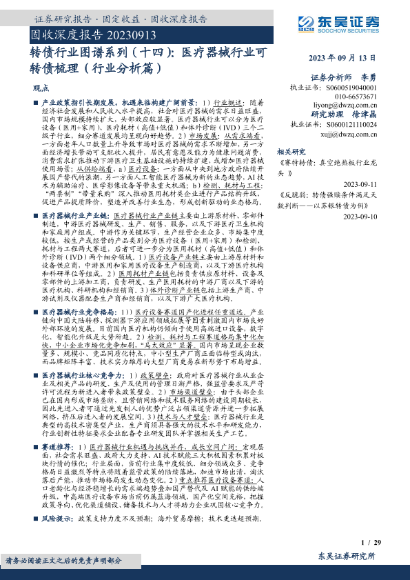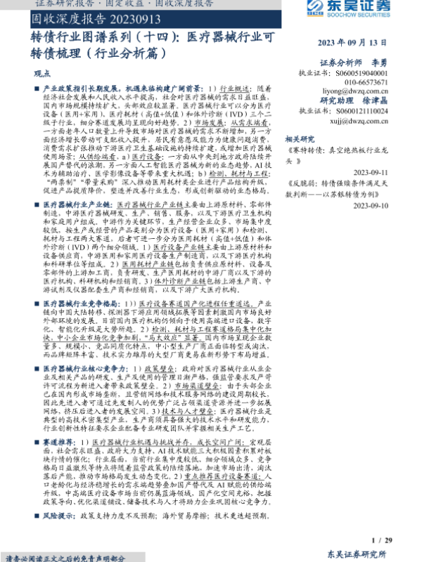 【东吴证券】【20230913】转债行业图谱系列(十四):医疗器械行业可转债梳理(行业分析篇)-29页