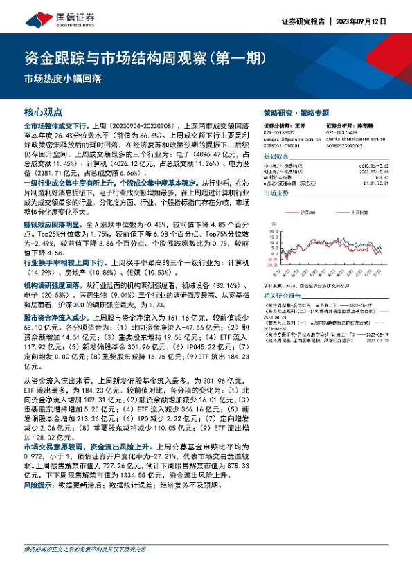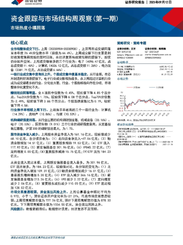 【国信证券】【20230912】资金跟踪与市场结构周观察(第一期):市场热度小幅回落-27页