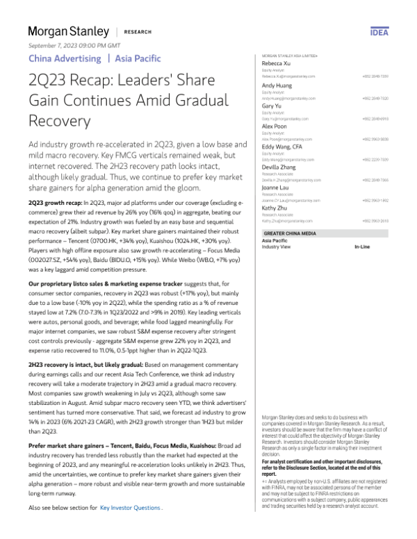【Morgan Stanley】【2023】China Advertising 2Q23 Recap Leaders Share Gain Continues-28页