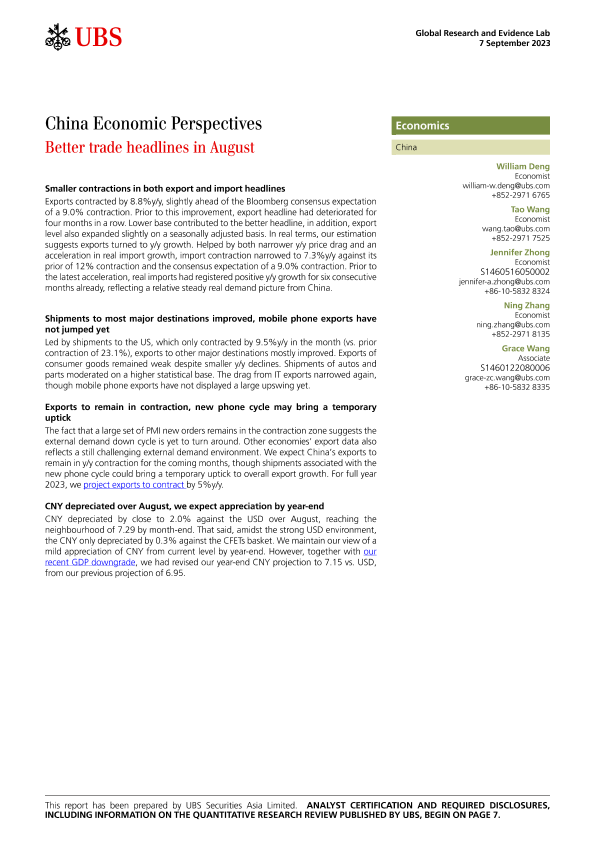 【UBS Securities Asia Limited】【20230907】China Economic Perspectives Better trade headlines in August-9页
