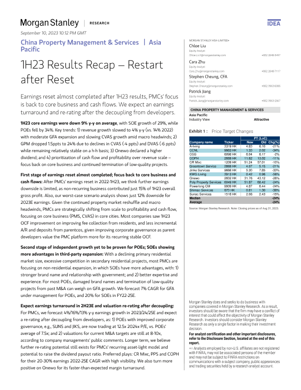 【Morgan Stanley】【2023】nley-China Property Management & Services 1H23 Results Recap – Restart after Reset-65页
