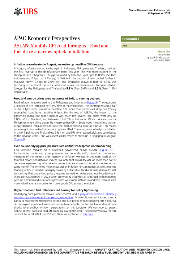 【UBS AG&Singapore Branch】【20230906】APAC Economic Perspectives _ASEAN Monthly CPI read-throughs-17页
