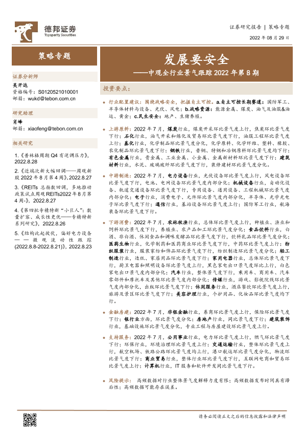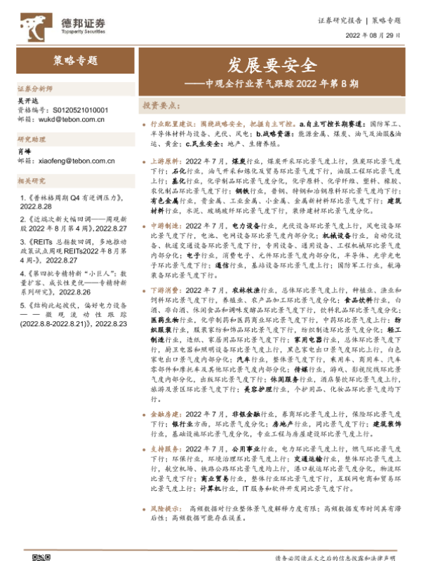 【德邦证券】【20220829】中观全行业景气跟踪2022年第8期:发展要安全-47页