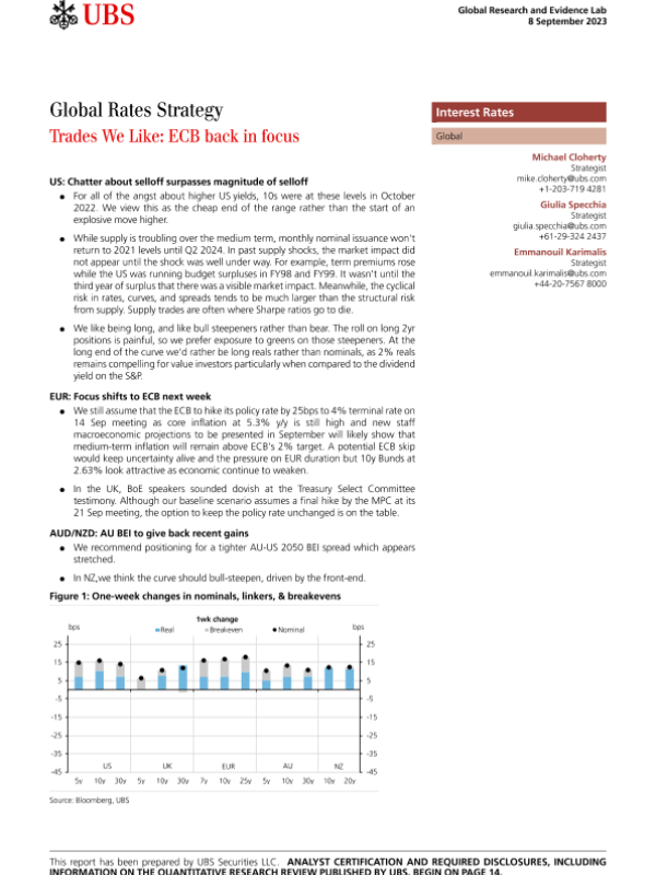 【UBS Securities LLC】【20230908】Global Rates Strategy Trades We Like - ECB back in focus-17页