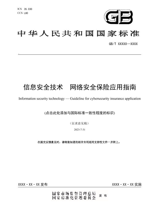 信息安全 国家标准 征求意见稿 技术指南 网络安全保险