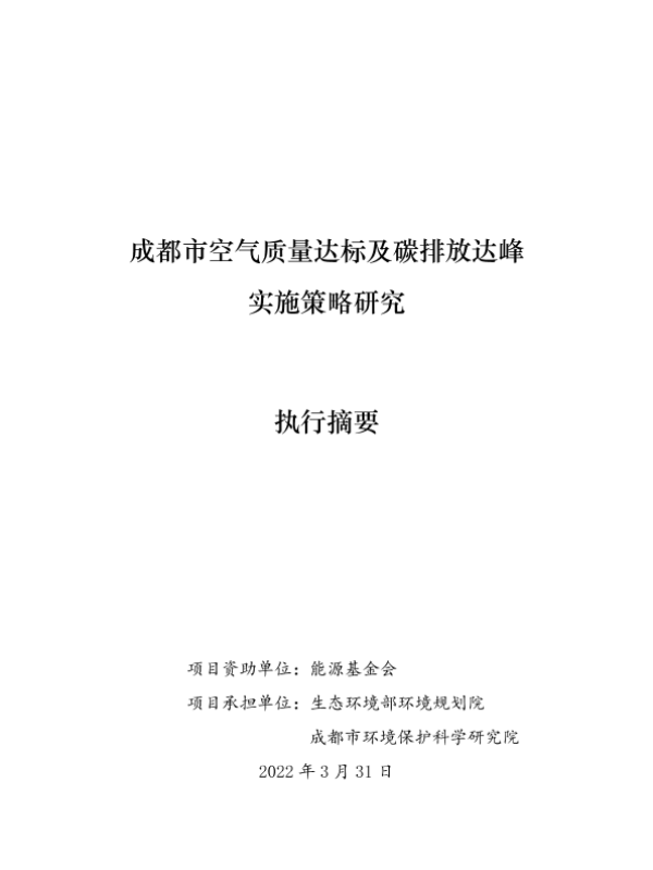 【能源基金会】【2022】成都市空气质量达标及碳排放达峰实施策略研究摘要报告-23页