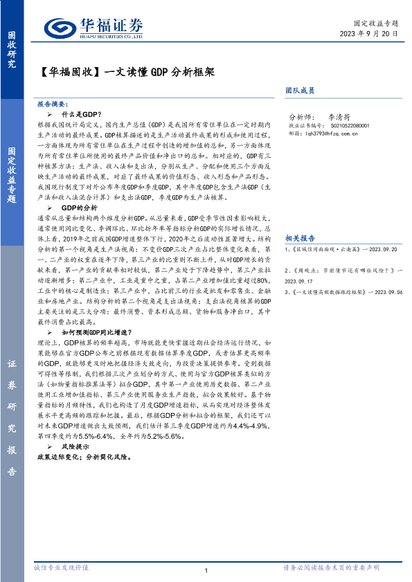 【华福证券】【20230920】【华福固收】一文读懂GDP分析框架-24页
