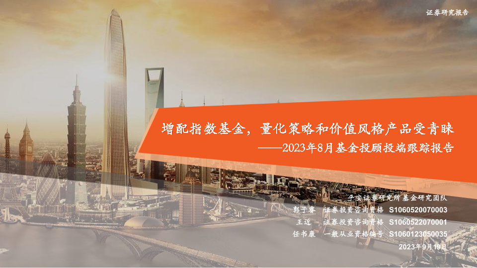 【平安证券】【20230919】2023年8月基金投顾投端跟踪报告:增配指数基金,量化策略和价值风格产品受青睐-19页