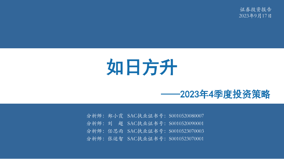 【华安证券】【20230917】2023年4季度投资策略:如日方升-50页