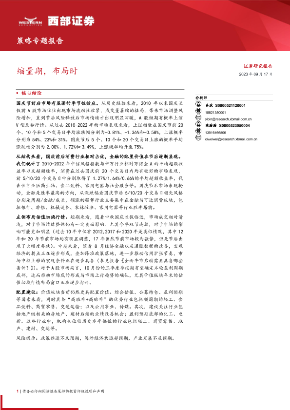 【西部证券】【20230917】策略专题报告:缩量期,布局时-16页