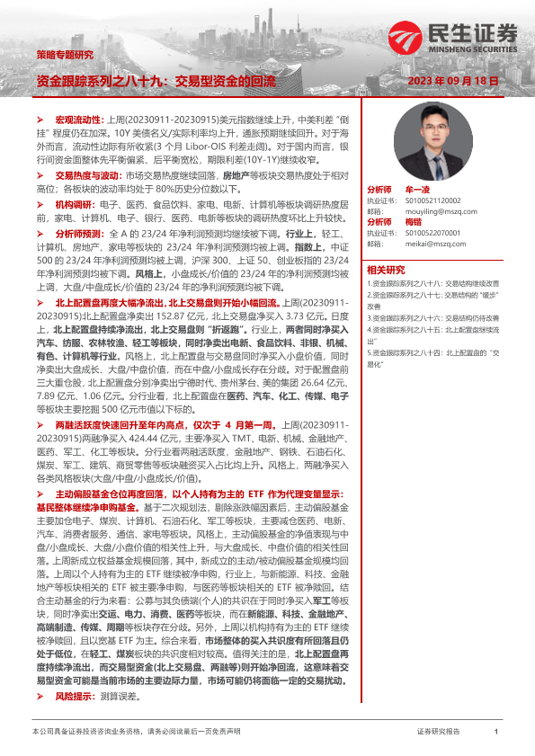 【民生证券】【20230918】策略专题研究:资金跟踪系列之八十九,交易型资金的回流-35页