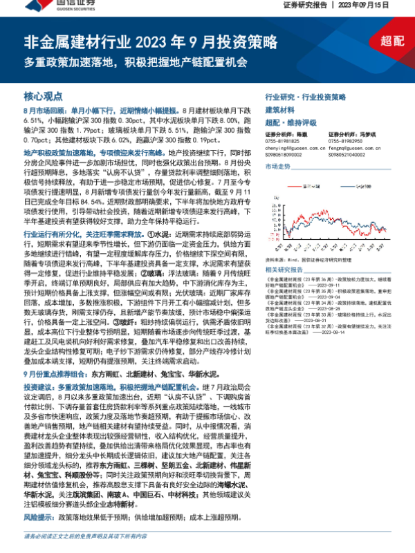 【国信证券】【20230915】非金属建材行业2023年9月投资策略:多重政策加速落地,积极把握地产链配置机会-34页