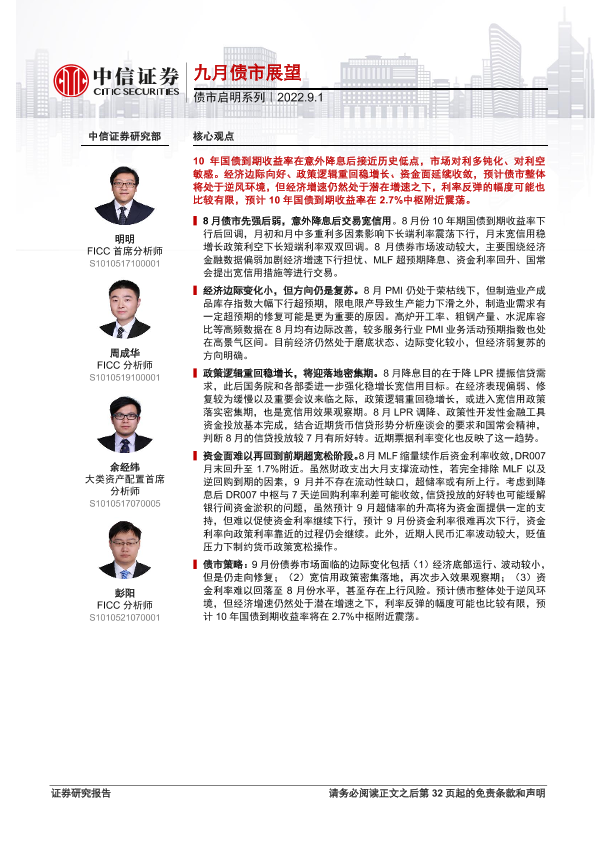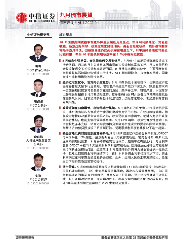 【中信证券】【20220901】债市启明系列:九月债市展望-33页