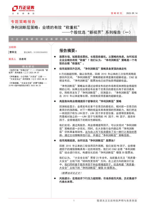 【方正证券】【20230914】个股优选“新视界”系列报告(一):净利润断层策略,业绩的有效“称重机”-17页