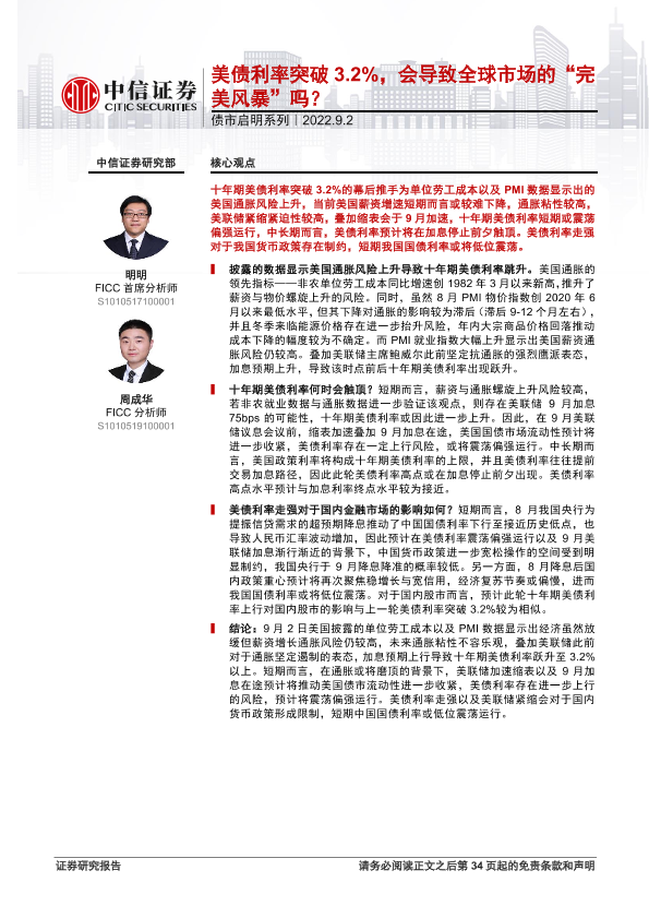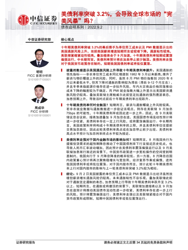 【中信证券】【20220902】债市启明系列:美债利率突破3.2%,会导致全球市场的“完美风暴”吗?-35页