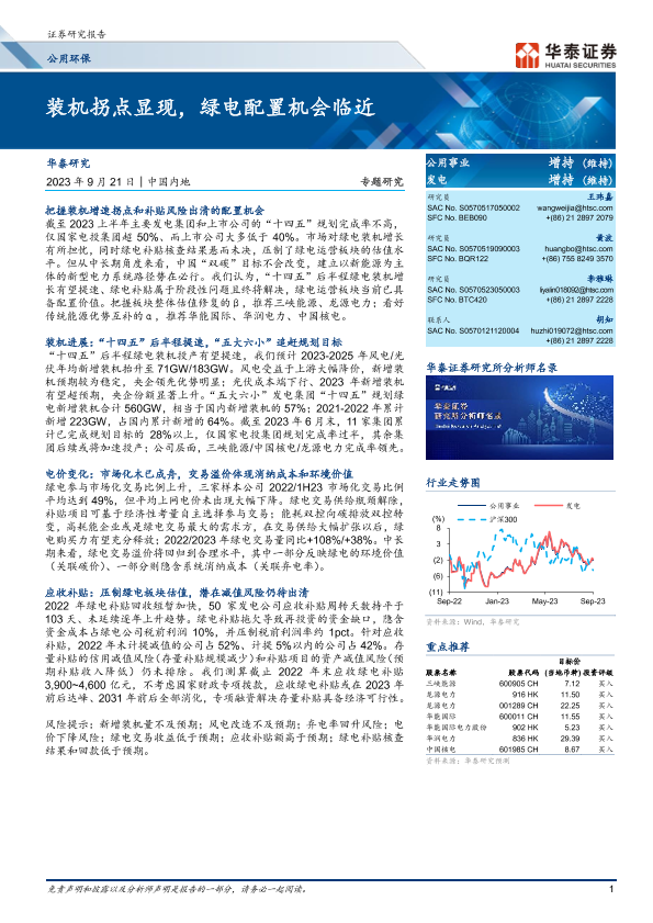 【华泰证券】【20230921】公用环保行业专题研究:装机拐点显现,绿电配置机会临近-26页