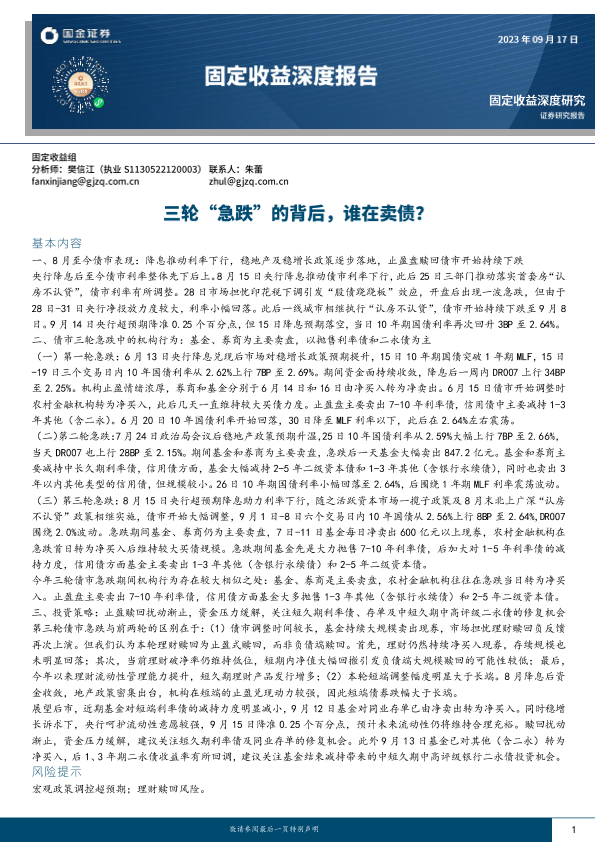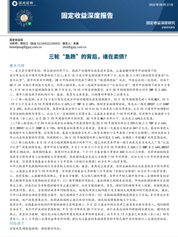 【国金证券】【20230917】固定收益深度报告:三轮“急跌”的背后,谁在卖债?-18页