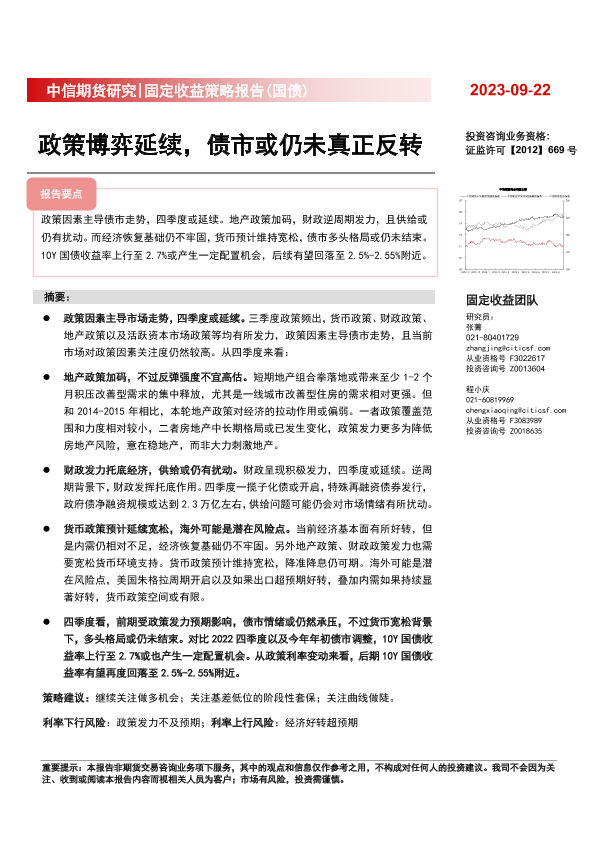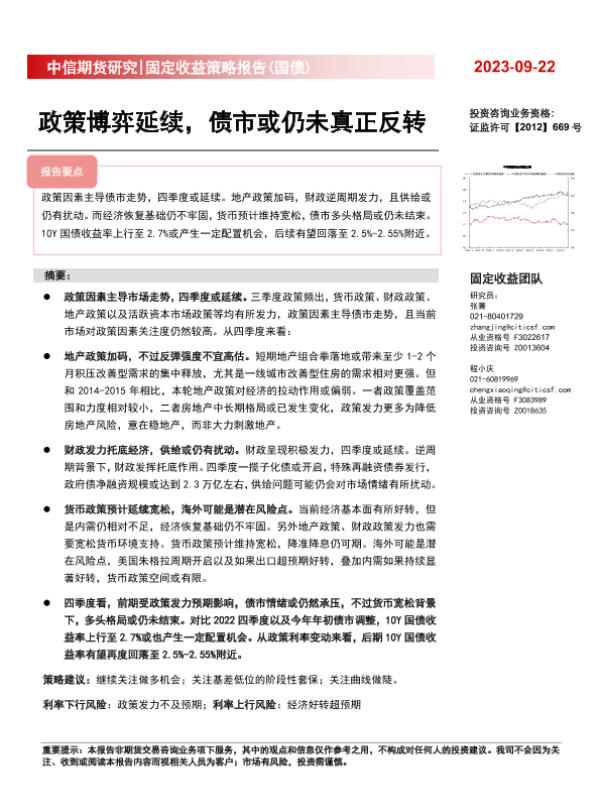 【中信期货】【20230922】固定收益策略报告(国债) :政策博弈延续,债市或仍未真正反转-28页
