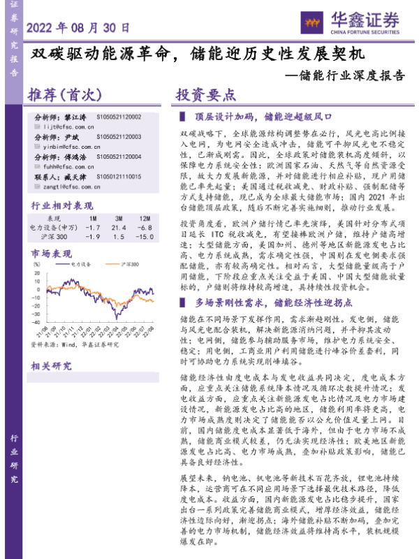 【华鑫证券】【20220830】储能行业深度报告:双碳驱动能源革命,储能迎历史性发展契机-66页