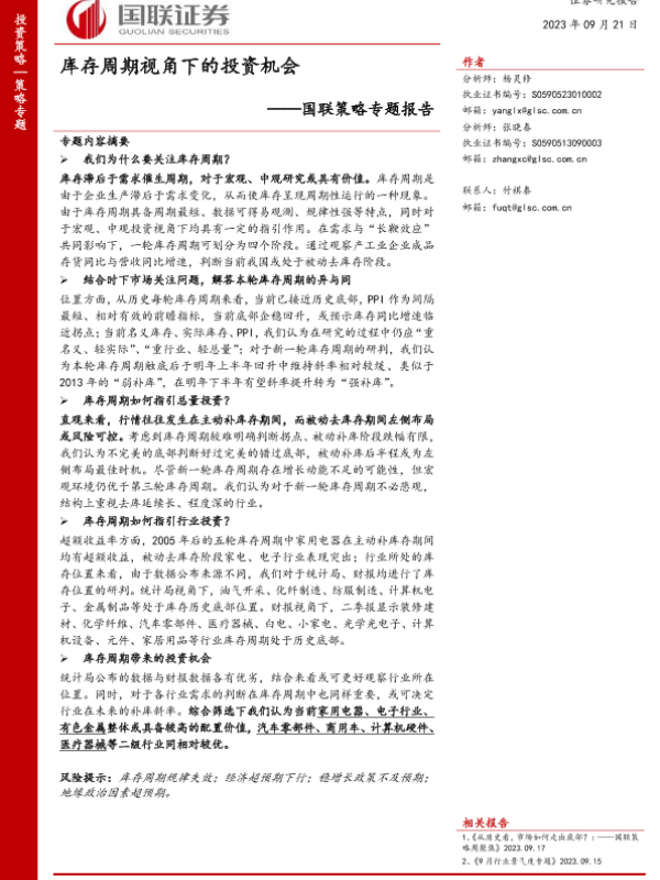 【国联证券】【20230921】库存周期视角下的投资机会-42页