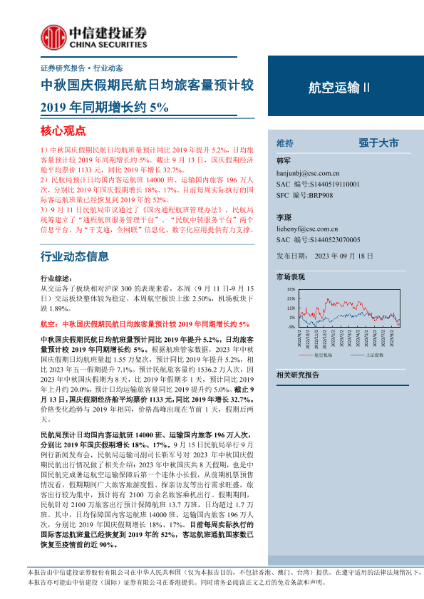 【中信建投证券】【20230918】航空运输行业:中秋国庆假期民航日均旅客量预计较2019年同期增长约5%-25页