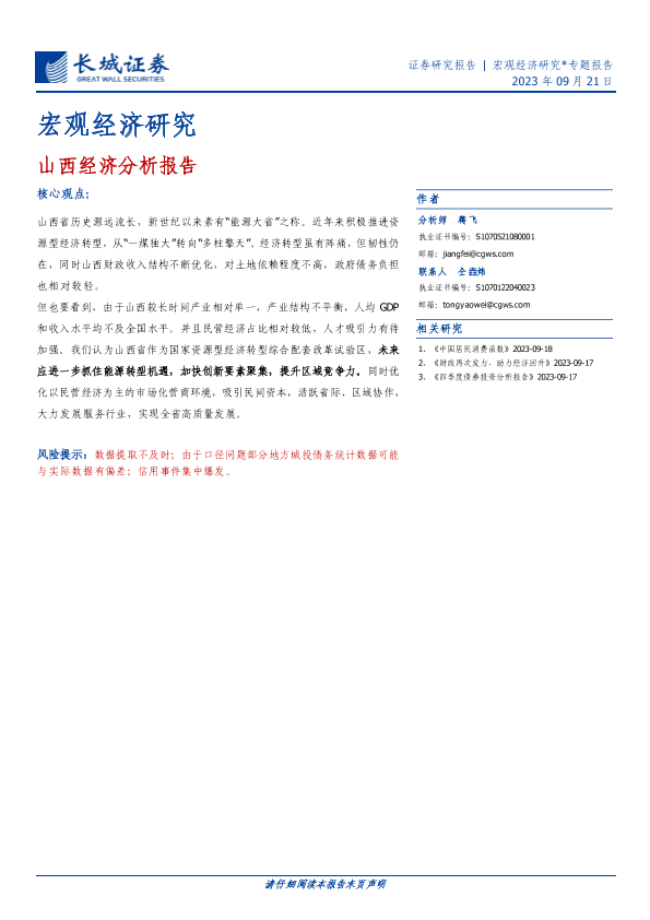 【长城证券】【20230921】宏观经济研究:山西经济分析报告-24页
