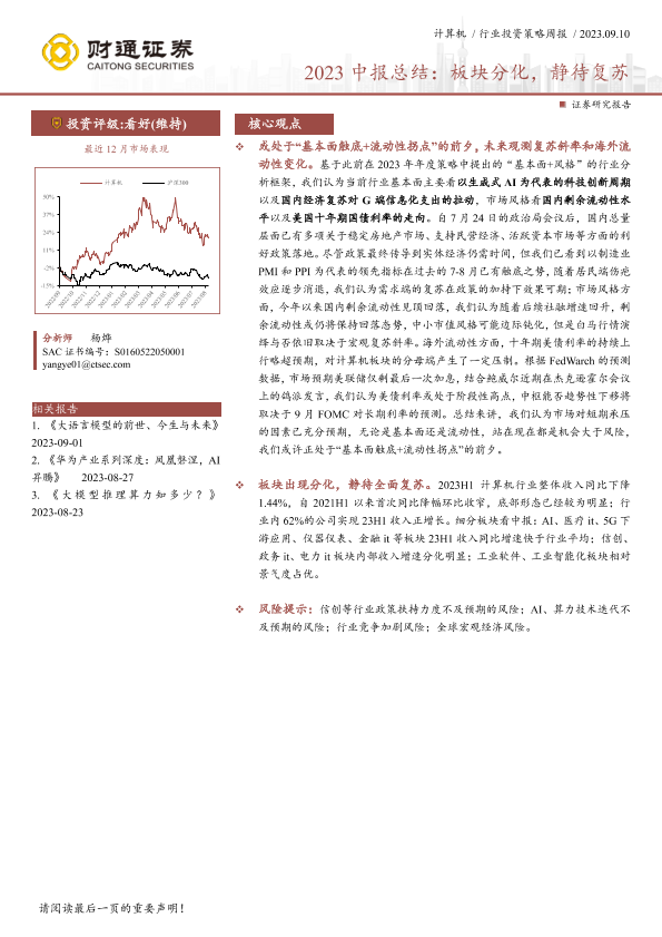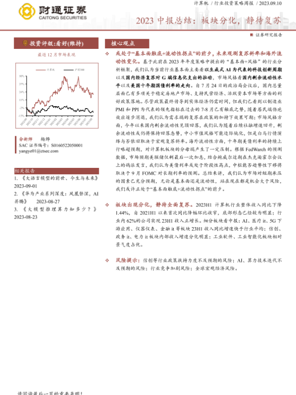 【财通证券】【20230910】计算机行业2023中报总结:板块分化,静待复苏-16页
