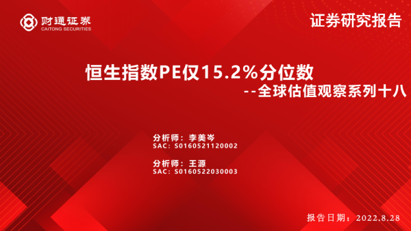 【财通证券】【20220828】全球估值观察系列十八:恒生指数PE仅15.2%分位数-29页