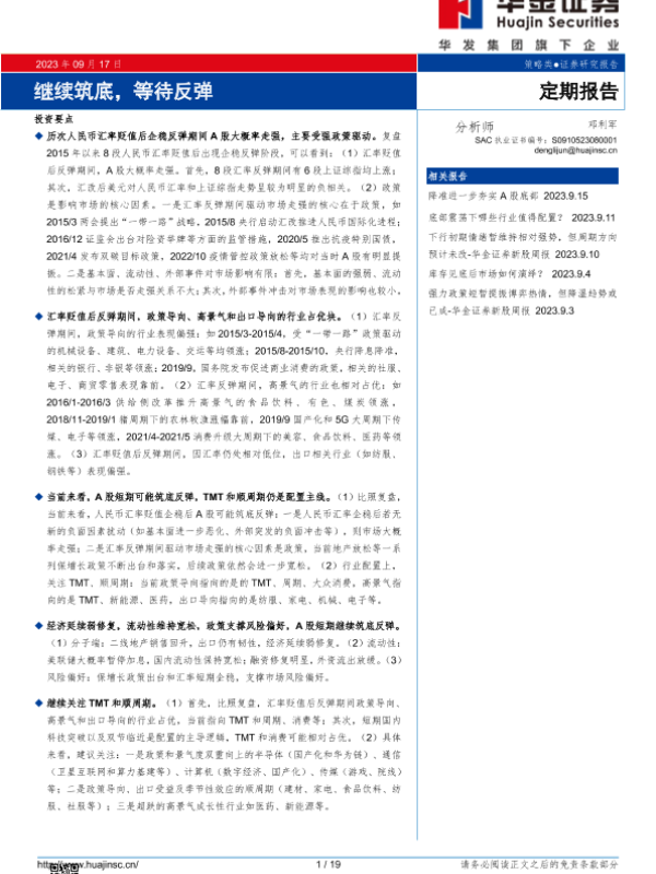 【华金证券】【20230917】继续筑底,等待反弹-19页