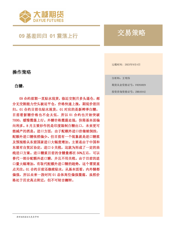 【大越期货】【20230904】交易策略:09基差回归,01震荡上行-16页