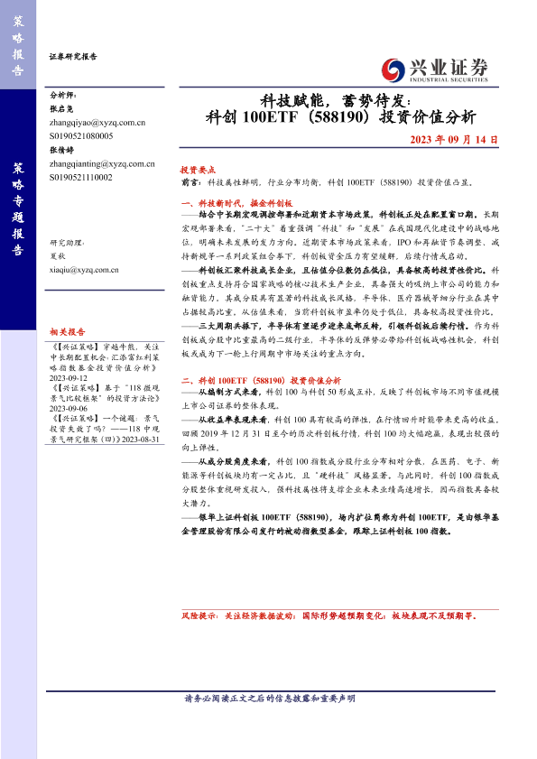 【兴业证券】【20230914】科技赋能,蓄势待发:科创 100ETF(588190)投资价值分析-15页