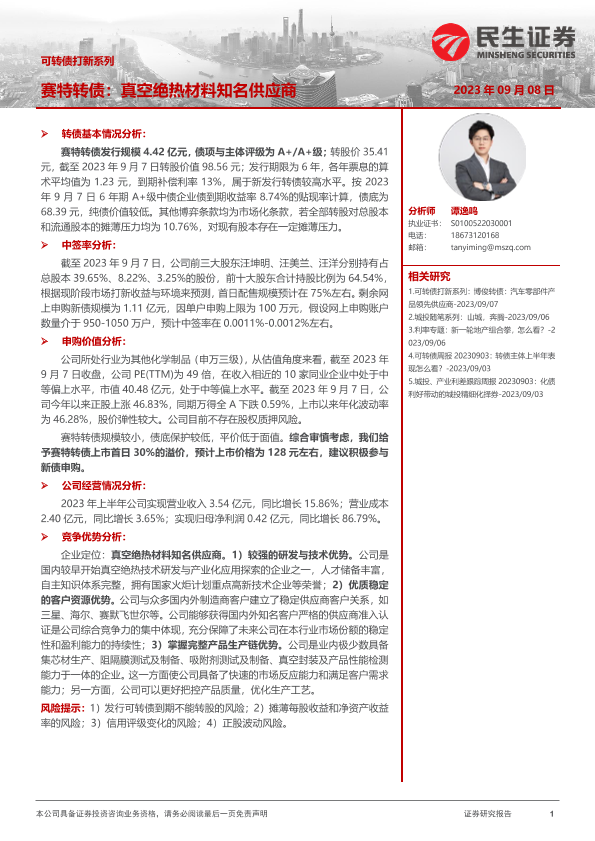 【民生证券】【20230908】可转债打新系列:赛特转债,真空绝热材料知名供应商-16页