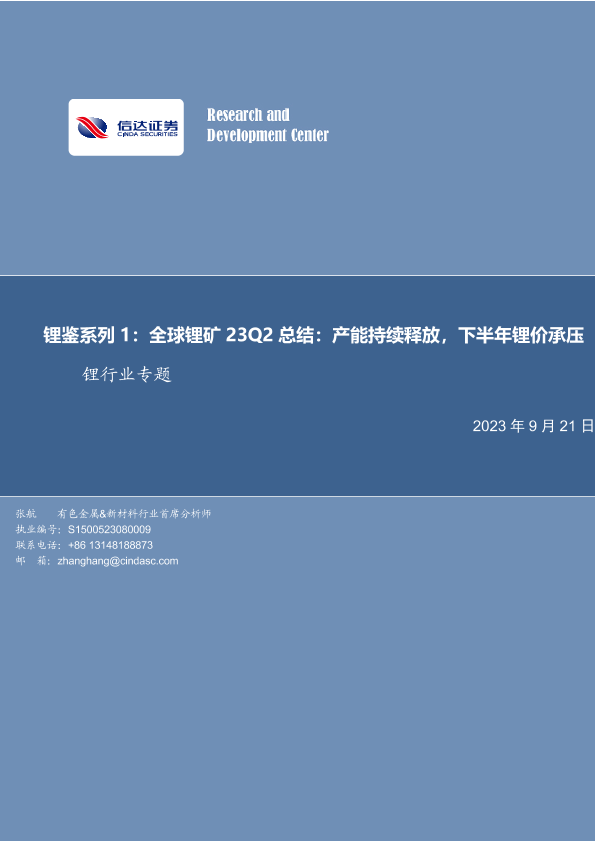 【信达证券】【20230921】锂行业专题:锂鉴系列1,全球锂矿23Q2总结,产能持续释放,下半年锂价承压-31页