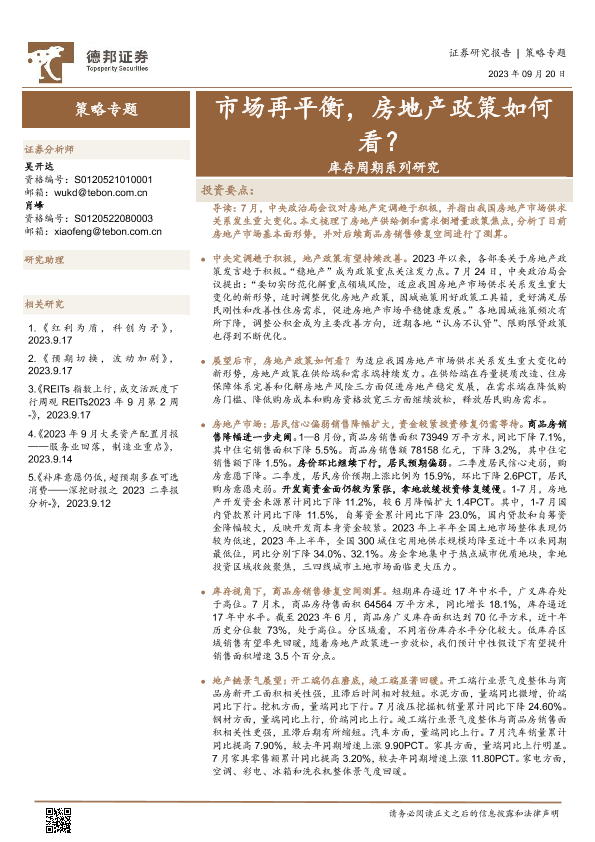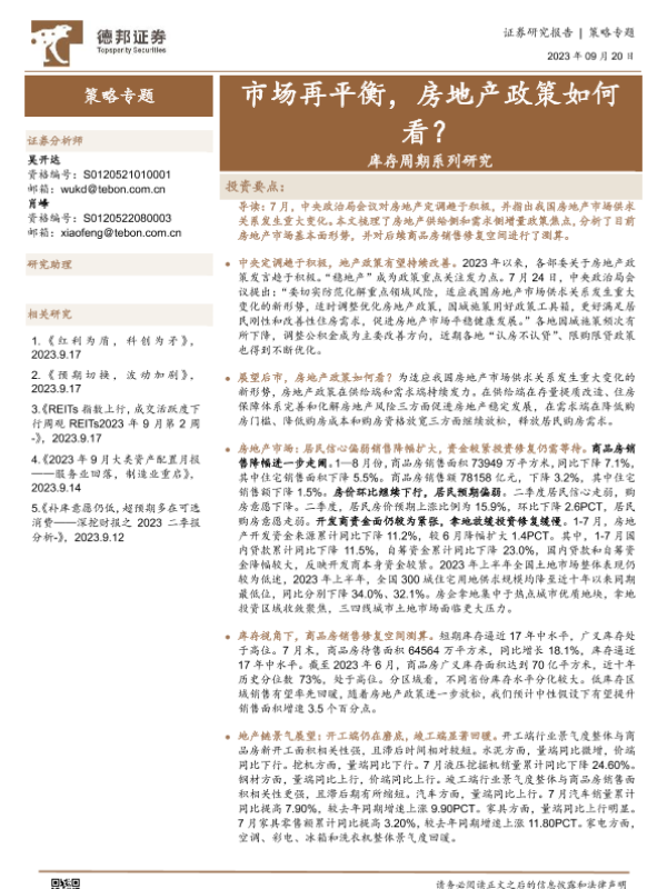 【德邦证券】【20230920】库存周期系列研究:市场再平衡,房地产政策如何看?-41页