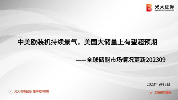 【光大证券】【20230908】全球储能行业市场情况更新:中美欧装机持续景气,美国大储量上有望超预期-16页
