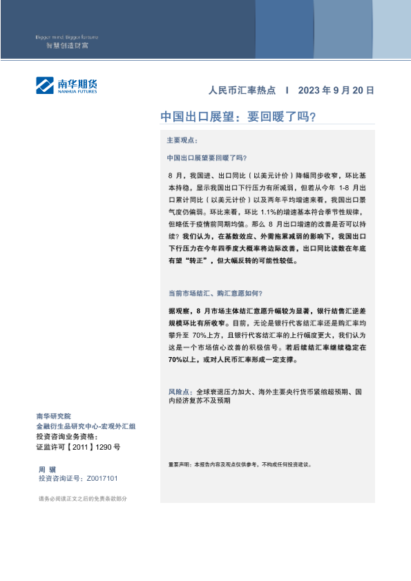 【南华期货】【20230920】人民币汇率热点:中国出口展望,要回暖了吗?-17页
