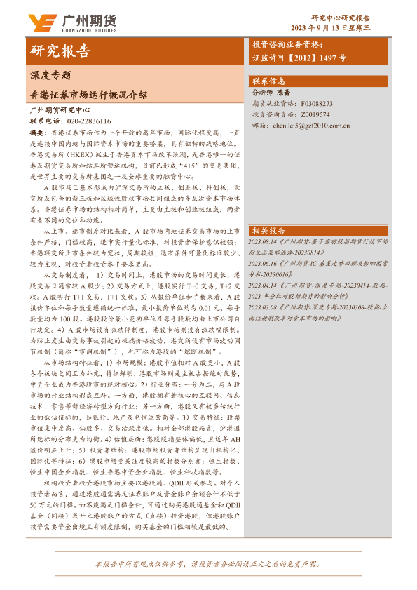 【广州期货】【20230913】深度专题:香港证券市场运行概况介绍-25页