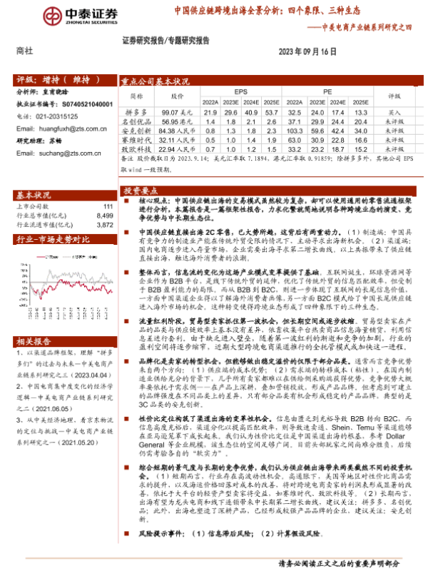 【中泰证券】【20230916】商社行业中美电商产业链系列研究之四:中国供应链跨境出海全景分析,四个象限、三种生态-27页