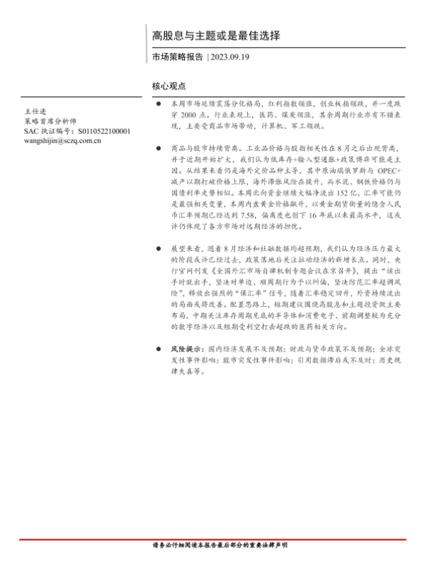 【首创证券】【20230919】市场策略报告:高股息与主题或是最佳选择-15页