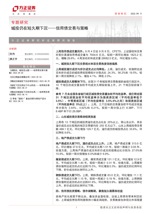 【方正证券】【20230911】信用债交易与策略:城投仍在短久期下沉-16页