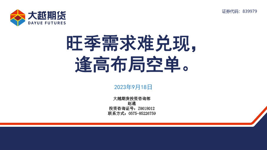 【大越期货】【20230918】旺季需求难兑现,逢高布局空单。-28页