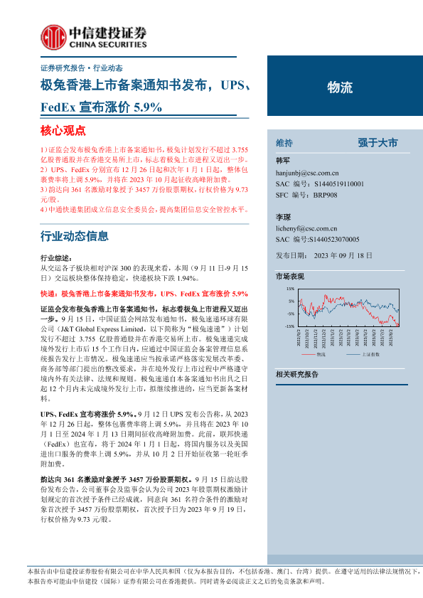 【中信建投证券】【20230918】物流行业:极兔香港上市备案通知书发布,UPS、FedEx宣布涨价5.9%-24页
