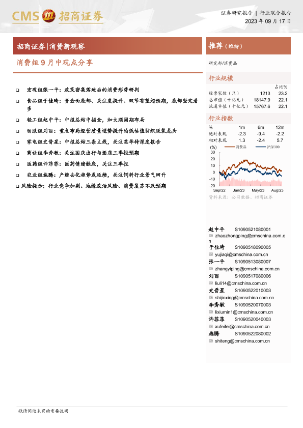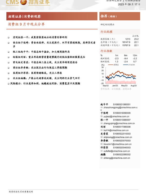 【海通证券】【20230917】消费行业新观察:消费组9月中观点分享-20页