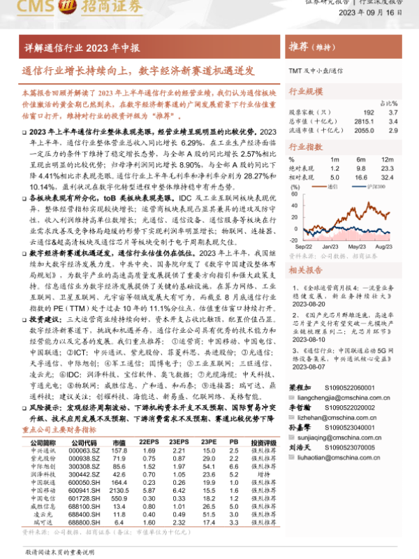 【海通证券】【20230916】详解通信行业2023年中报:通信行业增长持续向上,数字经济新赛道机遇迸发-25页