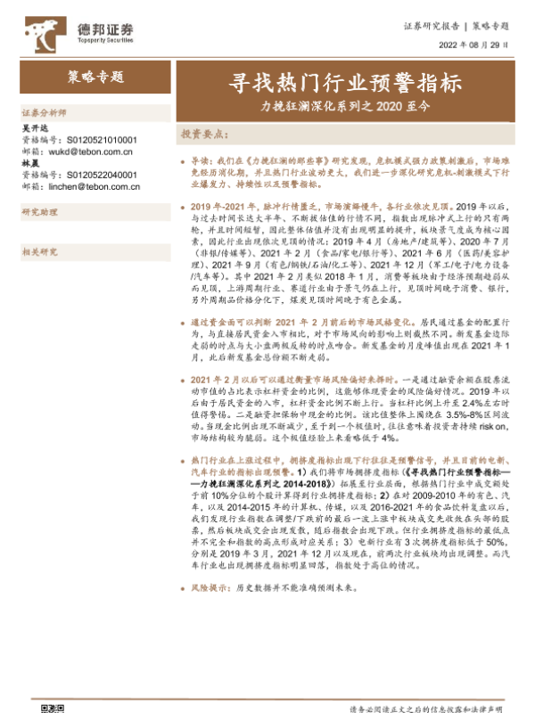 【德邦证券】【20220829】力挽狂澜深化系列之2020至今:寻找热门行业预警指标-24页